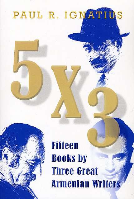 5 x 3: Fifteen Books by Three Great Armenian Writers offers summaries, commentaries, and anecdotes by Paul R Ignatius on a selection of works by Leon Z. Surmelian (I Ask You, Ladies and Gentlemen, 98.6, The Daredevils of Sassonn, Apples of Immortality, and Techniques of Fiction Writing), Michael Arlen (The London Venture, The Green Hat, Hell! Said the Duchess, Babes in the Wood, and Man's Mortality), and William Saroyan (The Daring Young Man on the Flying Trapeze, Inhale & Exhale, Three Times Three, My Name is Aram, Sons Come & Go, Mothers Hang In Forever), three major twentieth-century Armenian authors writing in English.