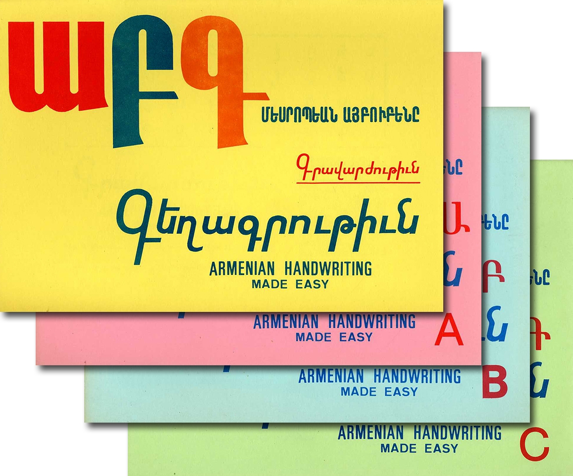 These notebooks are designed for the promotion of uniform handwriting by students in different educational institutions. They are prepared for pupils of all age groups. All three notebooks A, B, C, and D. are essential for mastering the technique of handwriting. Begin by training the students to write legibly and simply, without any embellishments. Teach them to write in the same way not only on these pages but always. A select group of Lebanese Armenian artists and educators have worked together in the production of these modern writing exercise-books for those who will still be writing armenian in the 21st century.