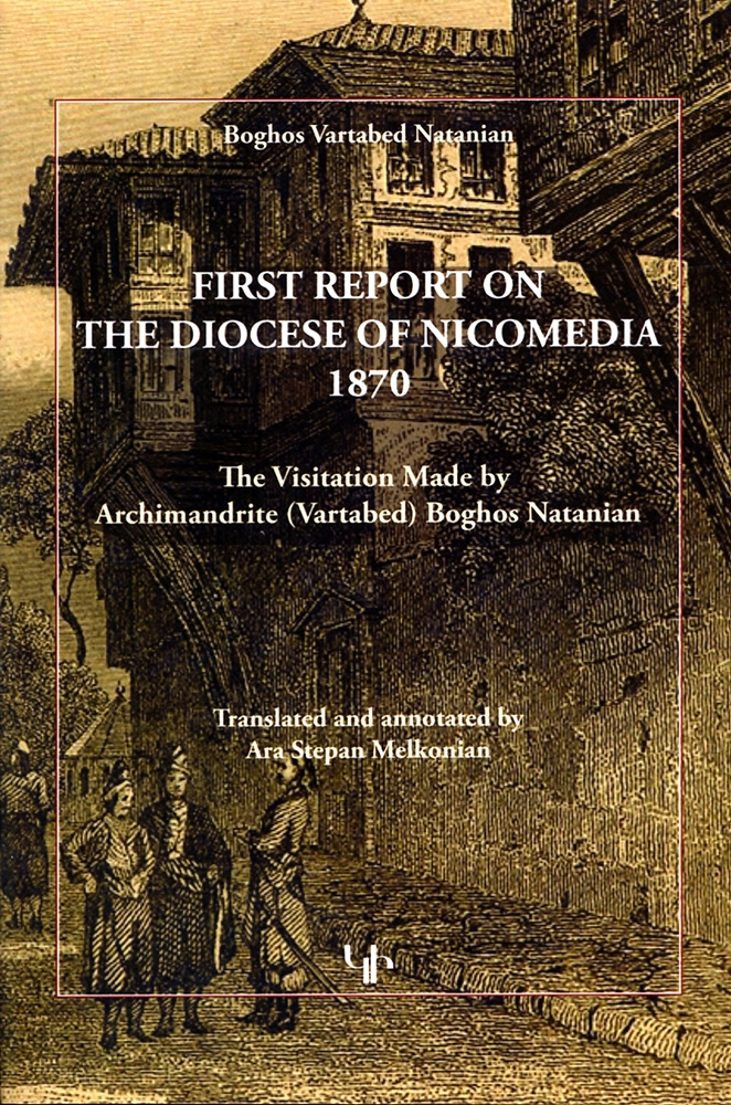 This survey of Armenian communities in Nicomedia in the Ottoman Empire (Izmit in modern Turkey) was carried out by Archimandrite (vartabed) Boghos Natanian in September 1870. The report was originally published in Armenian in 1871. The work focuses on the national administration of the region in terms of demography, schools, and economic well being, as well as certain local practices such as wedding ceremonies.