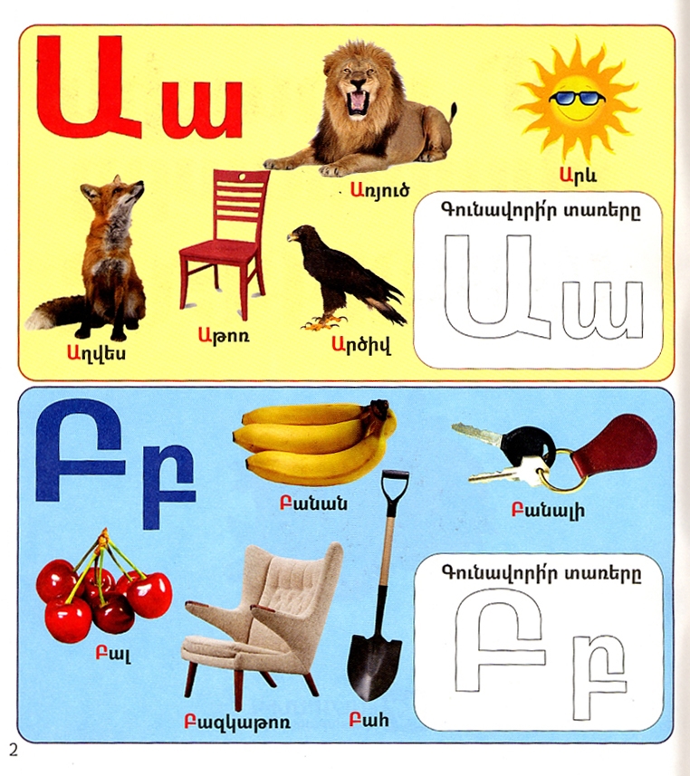 Գրքում ընդգրկված վարժությունները մեծապես կնպաստեն մատների ճկունության, մատիտը և գրիչը բռնելու հմտության զարգացմանը: Խաղային վարժությունները երեխային առաջարկում են գտնել և գունավորել տառերը, գծերով միացնել մեծատառը փոքրատառին, ընդգծել ավելորդը և այլն: Գրքի հավելյալ էջերում ներառված են բնագիտական, տրամաբանական, երեխայի բառապաշարի և ընդհանուր զարգացման այլ վարժություններ: