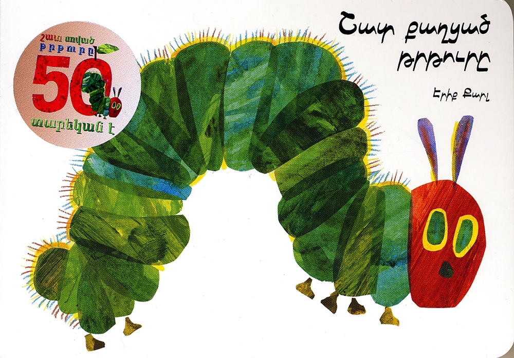 Գրքում օգտագործվել են որոշակի կոլաժային պատկերազարդումներ, «կերբած» անցքեր էջերում, պարզ տեքստ ուսացանող թեմաներով՝ համրանք, շաբաթվա օրեր, ուտելիքներ և թիթեռի կյանքի փուլերը: