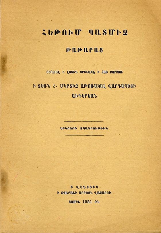 Հ. Մկտրիչ Աթոռակալ Վարդապետի Աւգերեան (Հեղինակ)