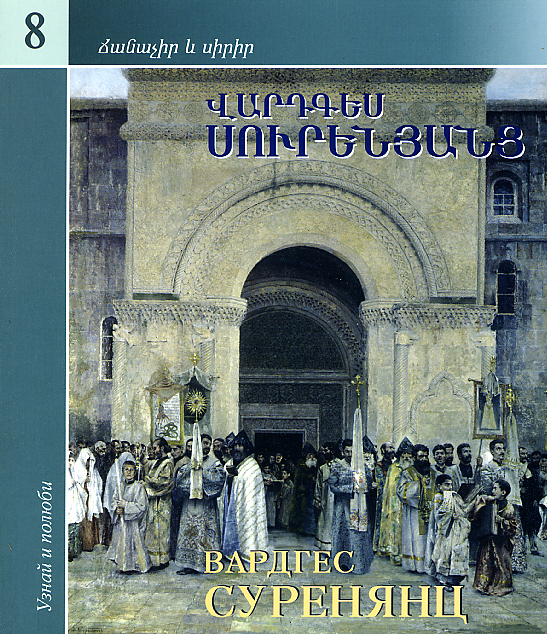 Under the impression of massacres organized in 1895 by Sultan Abdulhamid II in Western Armenia, Sureniants created his first great historical paintings. The canvas The Trampled Sanctuary concentrates the spectator attention on ancient manuscripts scattered on the ground with a Cross-stone proudly facing them. The spiritual power of the people is symbolized by the picture The Monastery of Hrispsime in which the church towers above a desert and ashy land.